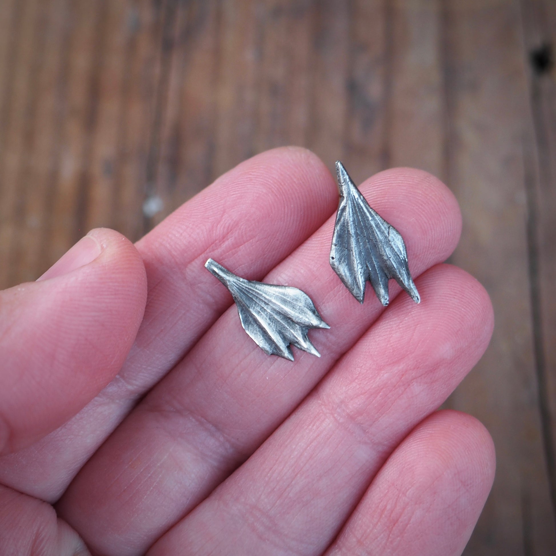 Sterling silver studs pressed with the fan-like shape and delicate texture of wild Colorado ‘blanket flower’ petals—capturing a fleeting bloom in a timeless form.