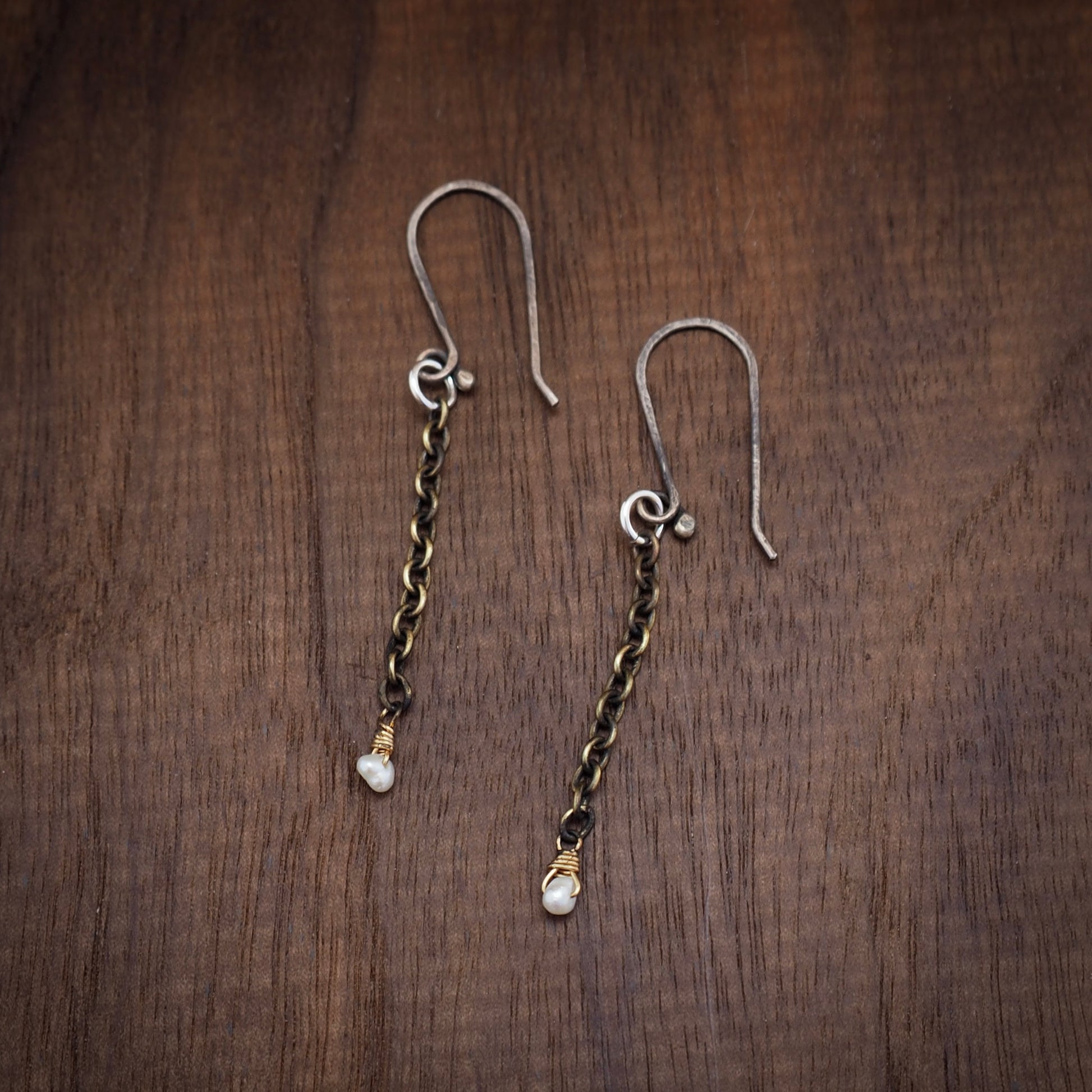 Mixing the warm and cool of Sterling Silver and brass, these lightweight chains have a “grungy” patina offering a grit and grace contrast with a hint of glimmer.