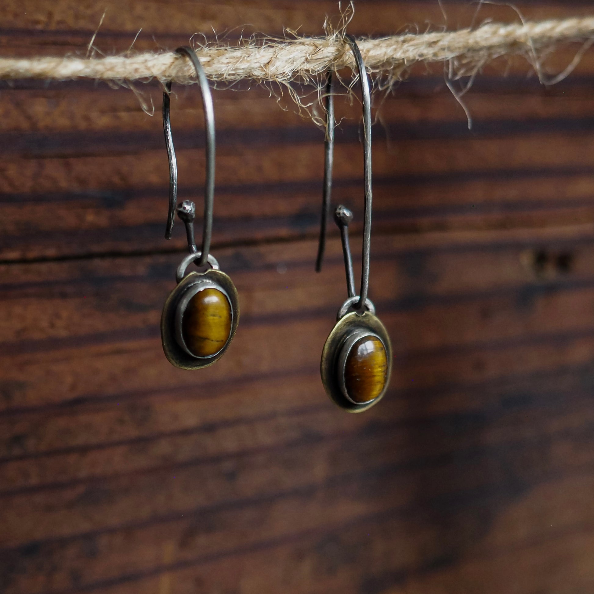 Handcrafted charms designed to swap on and off your Interchange hoops (sold separately). This pair features natural tigers eye set in a silver bezel, with a warm brass "backplate", further framing the stone—think of them as a charm bracelet for your ears! Mix and match different stone sets to match your mood and wardrobe.