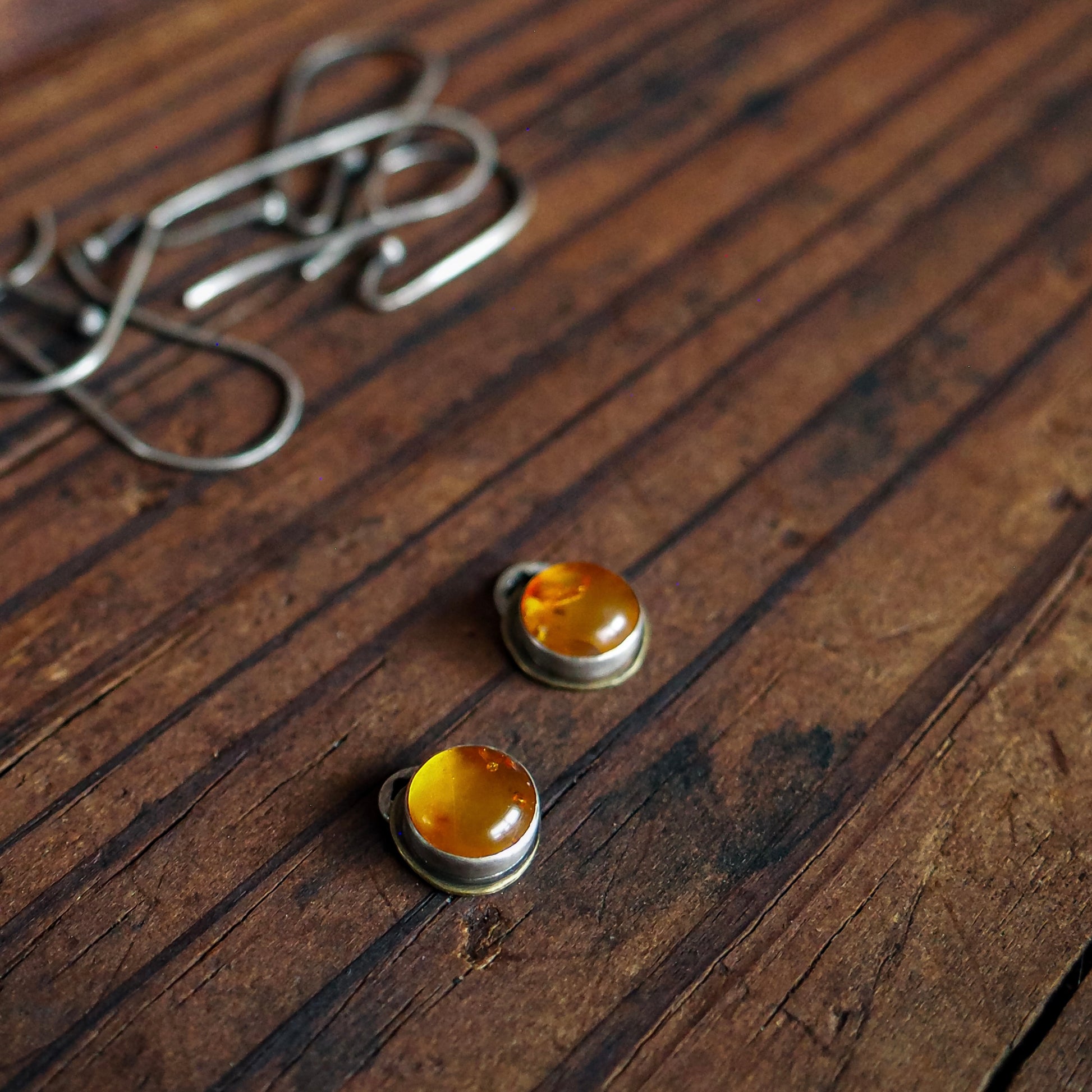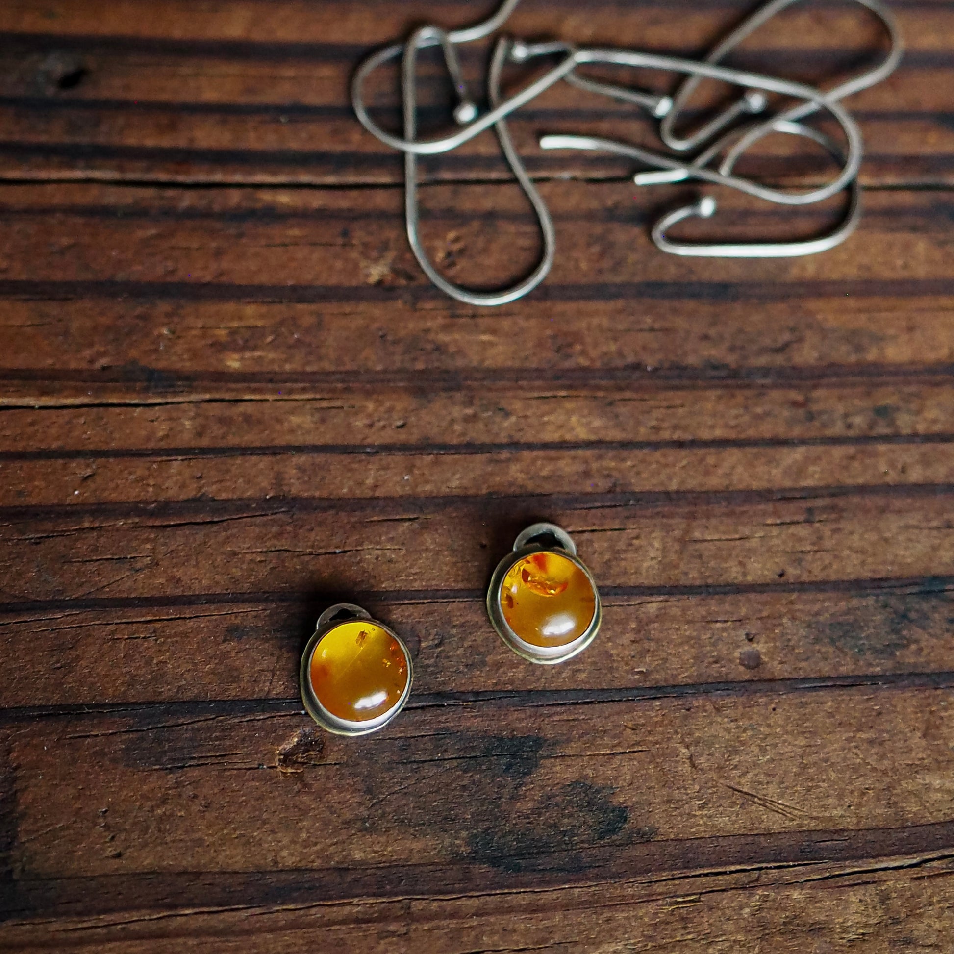 Handcrafted charms designed to swap on and off your Interchange hoops (sold separately). This pair features natural Baltic amber set in a silver bezel, with antiqued brass "backplates", further framing the stone—think of them as a charm bracelet for your ears! Mix and match different stone sets to match your mood and wardrobe.