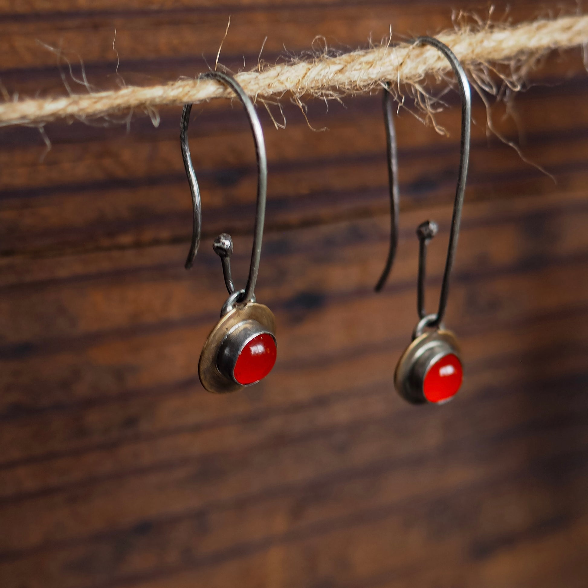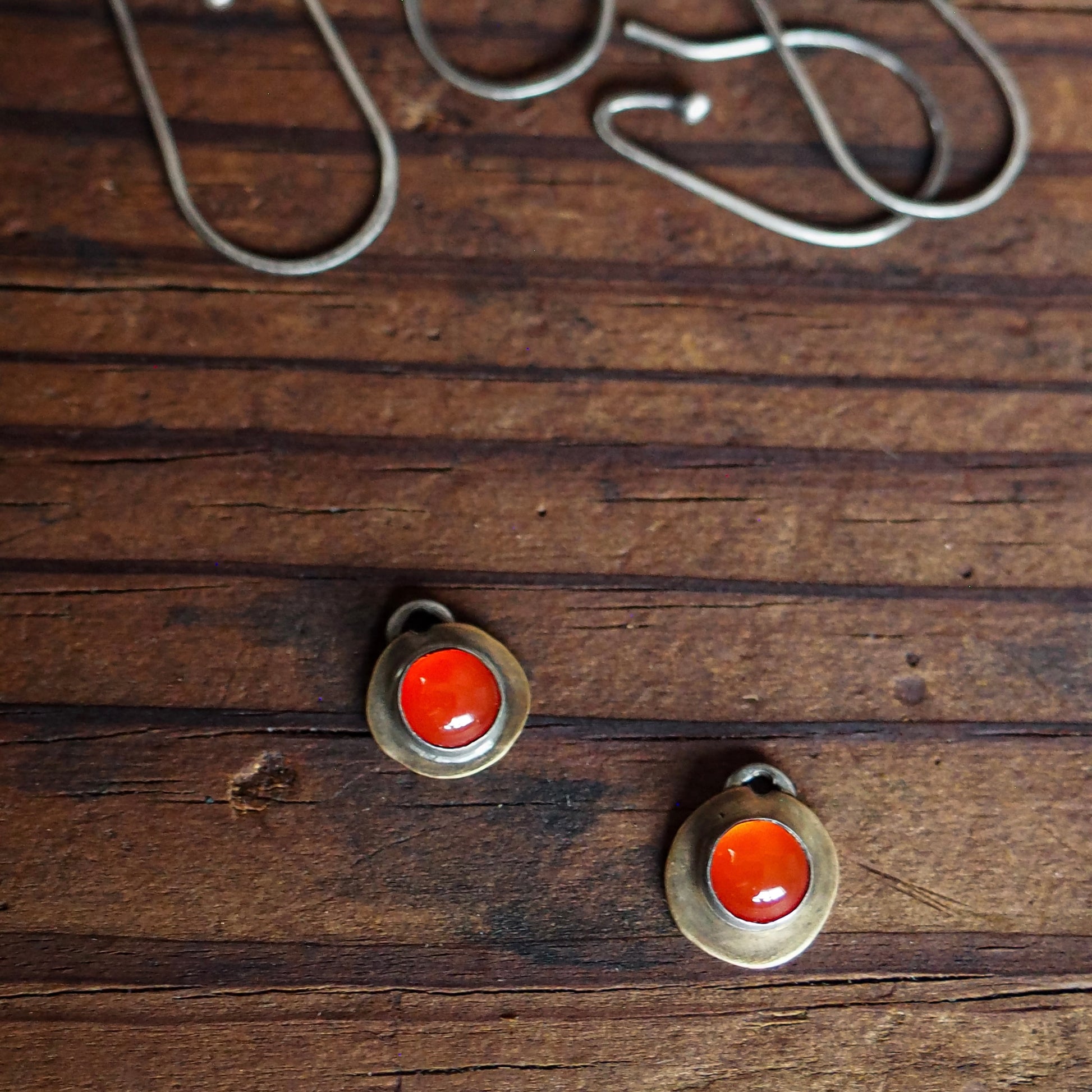 Handcrafted charms designed to swap on and off your Interchange hoops (sold separately). This pair features natural carnelian set in a silver bezel, with an antiqued brass "backplate", further framing the stone—think of them as a charm bracelet for your ears! Mix and match different stone sets to match your mood and wardrobe.